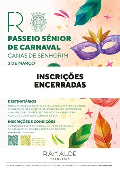 [INSCRIÇÕES ENCERRADAS] Passeio Sénior de Carnaval | 3 de março As inscrições para o Passeio ... -
