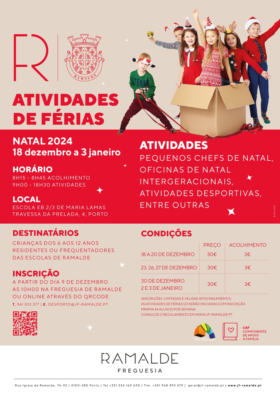Para 𝗺𝗮𝗶𝘀 𝗶𝗻𝗳𝗼𝗿𝗺𝗮𝗰̧𝗼̃𝗲𝘀 contacte: desporto@jf-ramalde.pt ☎️ 961 013 377